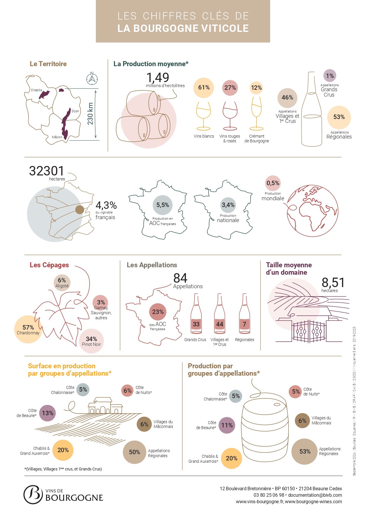 Découvrez les derniers chiffres clés de la Bourgogne viticole grâce à ces infographies réalisées par le Bureau Interprofessionnel des Vins de Bourgogne (BIVB)